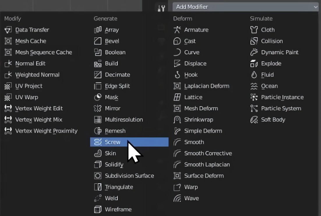 Select the screw modifier.